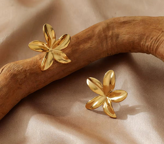 Anti Tarnish Stainless Steel Elegant Gold Floral Stud Earrings for Women | Bold Statement Flower Jewelry