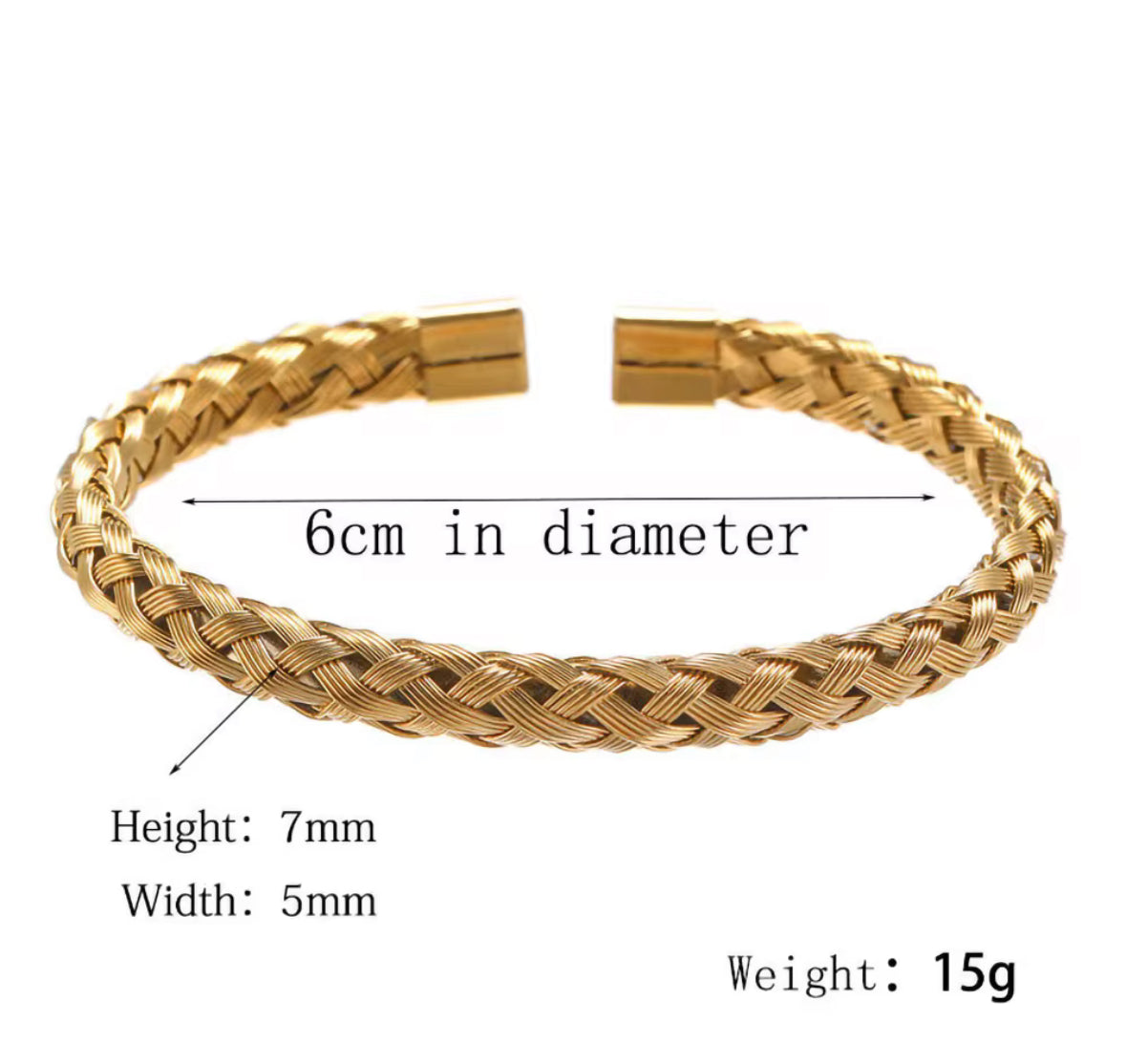 Braided Stainless Steel Cuff Bracelet for Men & Women – Gold & Silver Plated Adjustable Bangle