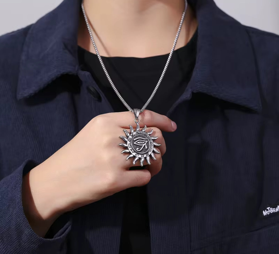 Eye of Horus Sun Pendant Necklace – Stainless Steel Egyptian Amulet Jewelry