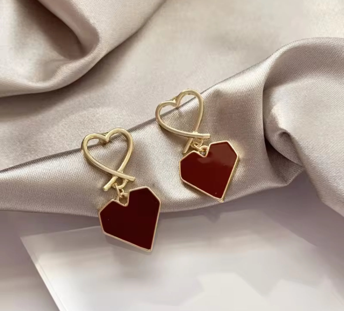 Celebrate love in style with these Gold Heart Drop Earrings, designed with a modern twist. Featuring a sleek open-heart loop and a bold geometric heart charm in deep chocolate-brown enamel, these earrings are the perfect blend of minimalism and statement fashion.