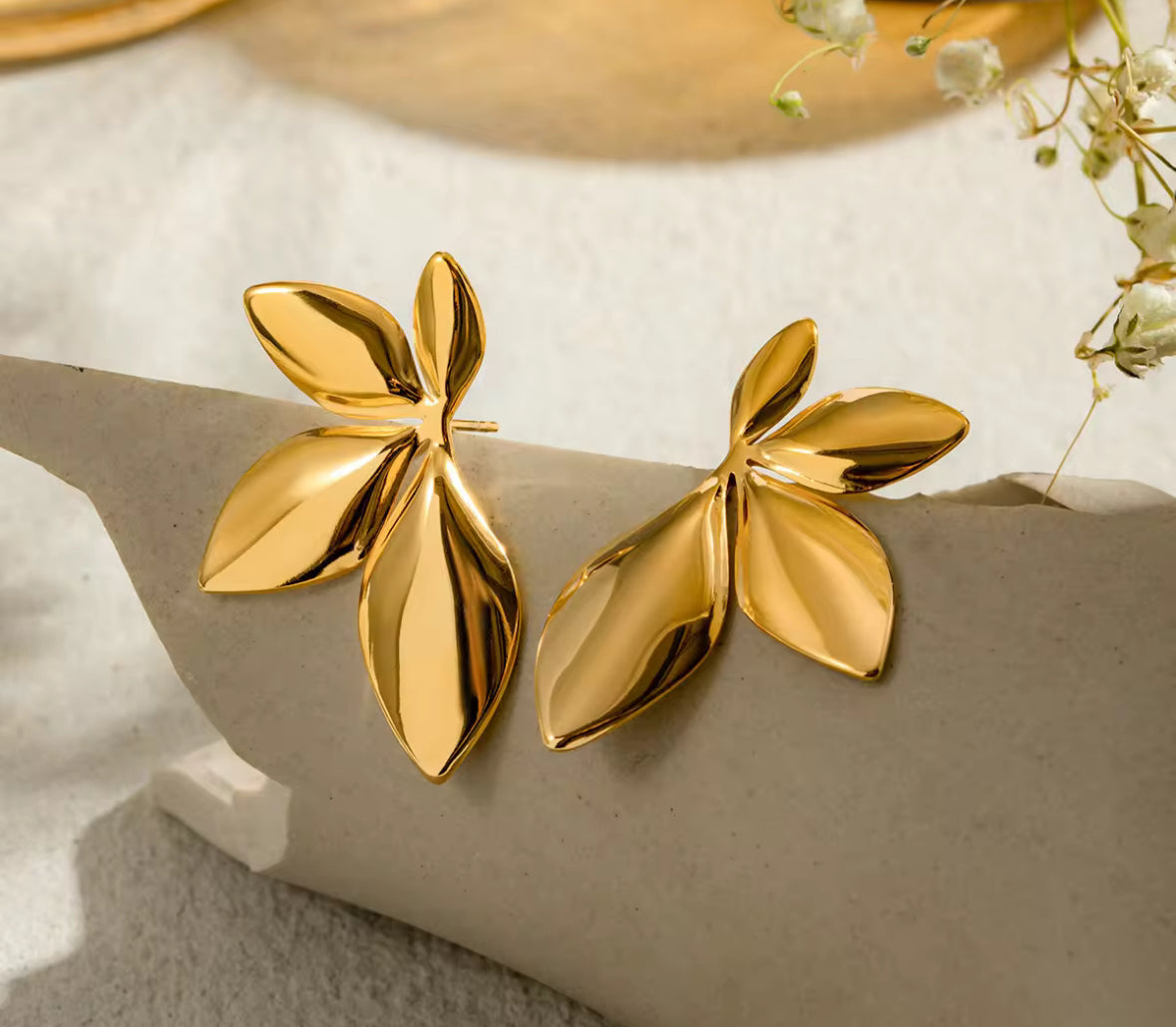 Stainless Steel Leaf Korean Imitation Earrings – Chic & Affordable Styles