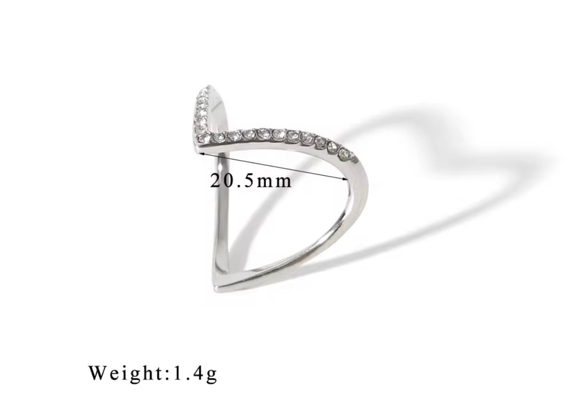 V-Shape Gold Plated Diamond Studded Ring for Women | Elegant Chevron Minimal Finger Ring | Party Wear Jewellery