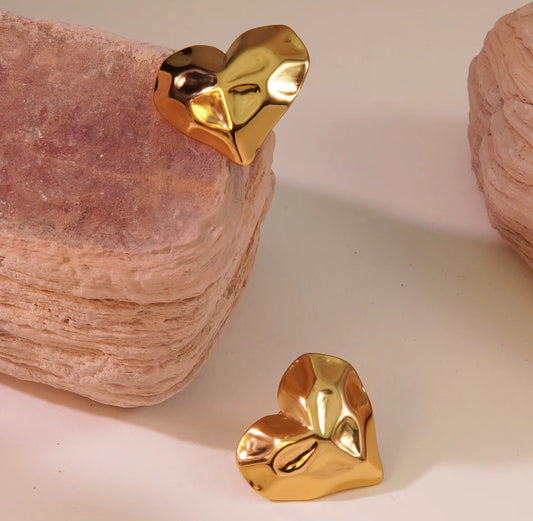 Anti Tarnish Stainless Steel Bold Gold Heart-Shaped Stud Earrings for Women | Chunky, Modern Statement Jewelry