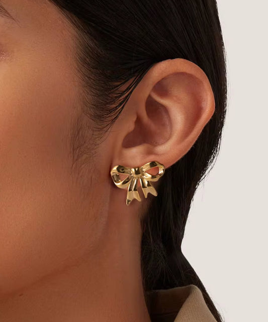 Anti Tarnish Stainless Steel Golden Bow Statement Earrings – Elegant, Lightweight & Timeless Design