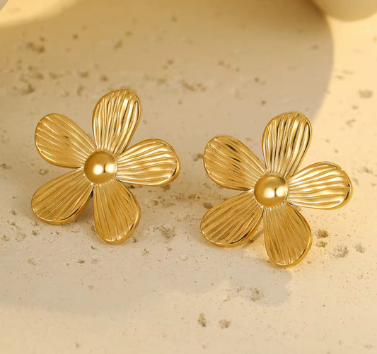 Anti Tarnish Stainless Steel Elegant Gold Floral Stud Earrings for Women | Bold Statement Flower Jewelry